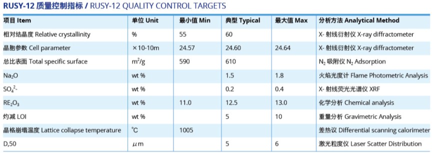 RUSY-12稀土Y分子篩,含RE2O3混合氧化稀土≥12%,根據用戶需要,可以調節稀土中La2O3和CeO2的比例。